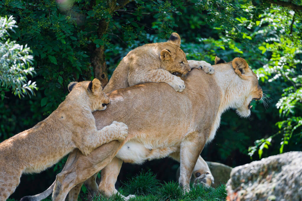 Viewing a pride of lions with cubs playing and frolicking in the bush as I snap memories with my camera.