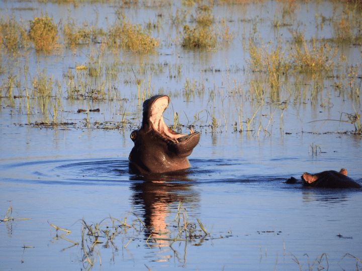 Today, you’ll venture into the heart of the Okavango Delta, a breathtaking landscape of vast grasslands that transform into a vibrant oasis during the seasonal floods. Arrive at your destination and board a speedboat for an exhilarating journey to your extraordinary home for the next two nights – a houseboat. Spend your time relaxing on the deck, engaging in friendly board games with fellow travelers, and indulge in a dinner prepared by your skilled captain. As the sun sets over the horizon, enjoy the breathtaking sunset while listening to the captivating sounds of hippos echoing across the water.