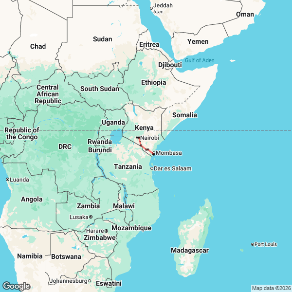 10 Day Discover Kenya’s Wildlife, History and Coastal Beauty by Train Map