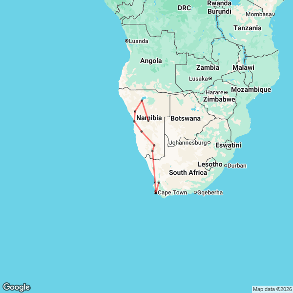 This Cape Town to Windhoek Overland is an action-packed budget safari. We travel through diverse scenery, desolate deserts, pounding Atlantic seaboards, game parks, and the wilderness of the Etosha National Park. Experience them all by a variety of exciting adventure activities that will give you the ultimate adrenaline rush.