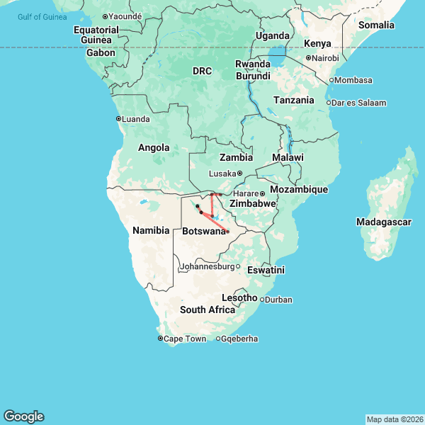 Our journey may also take us to the Central Kalahari Game Reserve or the Makgadikgadi Pans National Park, depending on the ever-changing wildlife conditions in the National Parks.