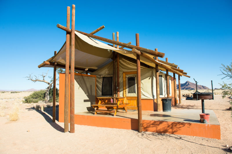 Twin share permanent tents with en-suite facilities. Restaurant, swimming pool & bar