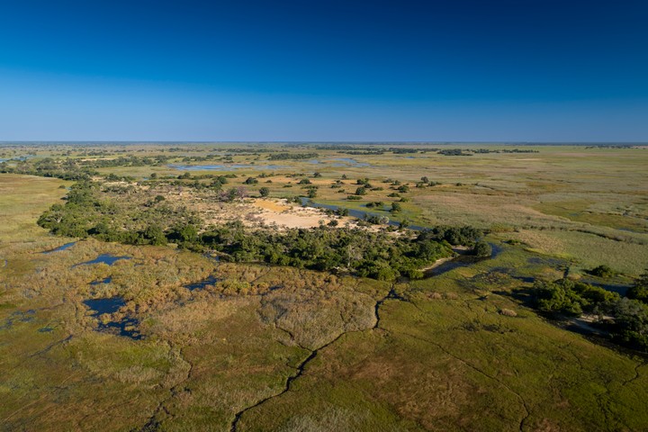 As the Okavango River flows south and eastwards from the highlands of central Angola, it creates one of the largest inland deltas in the world, where it slows and spreads into a unique ecosystem that supports a wide array of animal and plant species. There is something inherently beautiful about the sight of a Jacana striding delicately amongst the flowering lilies, the Bee Eater diving to catch an unsuspecting insect, and the familiar cry of the African Fish Eagle which all contribute to the creation of a unique natural masterpiece. Over time, the river disappears into the vast plains of the Makgadikgadi sands after spilling its contents into the vast plains.