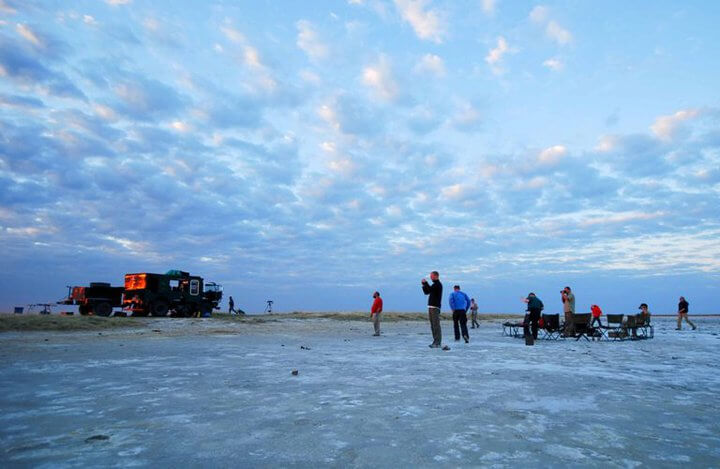As our last morning in the parks draws to a close, we make our way back to Maun. The Maun lodge serves a delicious lunch and then we head eastwards, stopping when we arrive at the spectacular Makgadikgadi Salt Pans. Wide open skies are surrounded by oceans of golden grass and absolute quiet. Take a moment here to be silent. The night is spent camping in splendid isolation. A night under the southern stars can be an awesome spectacle for the adventurous. During some seasons, it is difficult to reach the pans, so we camp near an interesting elephant watering hole instead.
