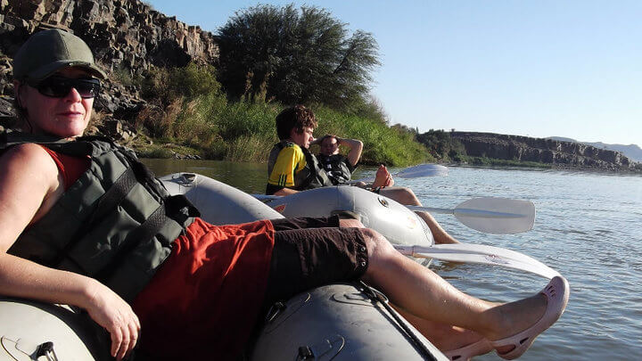 Today we journey through the Northern Cape and Namaqualand, making a stop off at the isolated town of Springbok to gather a few last-minute supplies. Once we have crossed the Namibian border, we arrive at our charming chalets that overlook the sparkling Orange River which creates a natural divider between South Africa and Namibia. For those travelling during the spring months (July – September) you may be fortunate enough to experience the wildflowers renowned in this region.