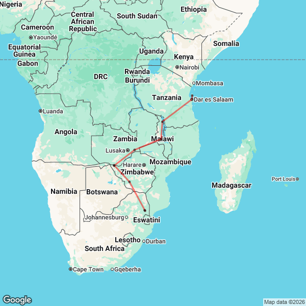 23 Day South Africa to Tanzania Tour Map
