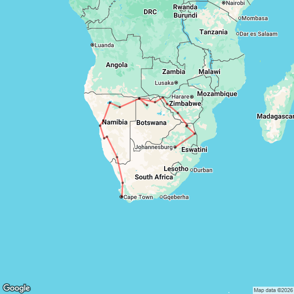 Rise with the wildlife and relish amazing moments on game drives in the African bush. Be amazed by beautiful settings in nature and stand in awe at Victoria Falls. This Southern Africa experience is your chance for the trip of a lifetime, camping in remote locations enjoying Africa authentically.