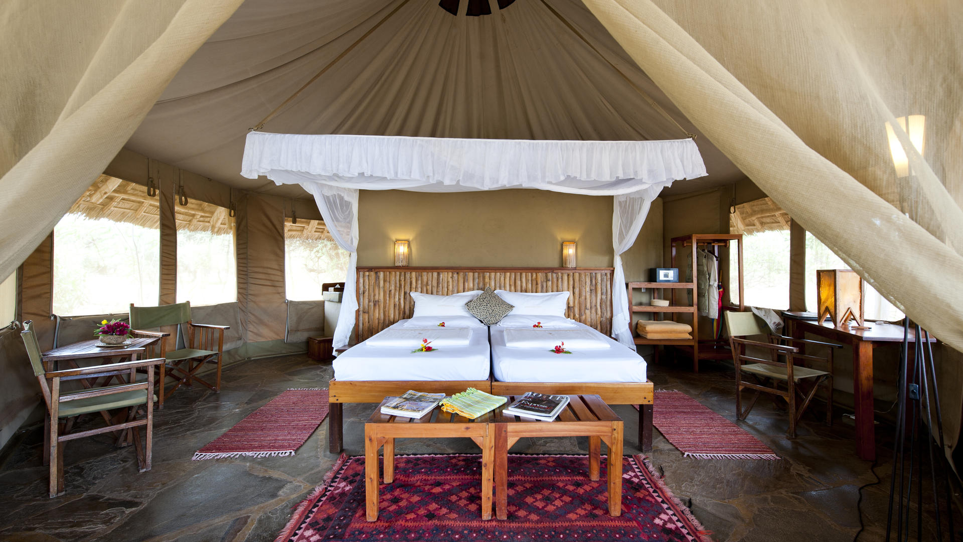 We meet in Nairobi, the capital of Kenya, where you will be briefed on your upcoming safari. You will then embark on your safari across Kenya in your 4×4 vehicle. We leave the hustle and bustle of the capital behind as we travel towards Tsavo West National Park. Within a few kilometers of leaving the city, nature takes over and the skyscrapers get replaced by shrubs and grasslands. Tsavo West is only a short drive away, so you will be able to embark on your first game drive in the afternoon. It is surprising how many animals you can spot on your first day! One of Kenya’s largest national parks, Tsavo West is home not only to the Big Five, but also to more than 600 different bird species. It is also home to the rare Hunter’s hartebeest. Severin Safari Camp will be your first stop for the night.