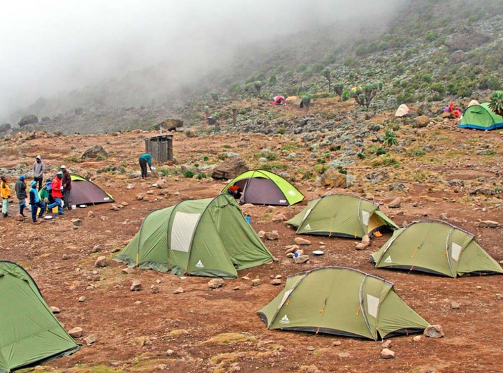 Hike via Lava Tower to Barranco Camp. Savor the breathtaking vista of the Breach Wall and Western Breach. From the Shira 2 Camp, ascend gradually through the rocky terrain to the Lava Tower (4600m, 15,092 feet). The path is progressively more difficult and steep. As the altitude may cause some hikers to feel weak or out of breath, go cautiously—or “pole pole,” as the Swahili phrase puts it—to prevent aggravating the symptoms. Go 650 meters (2133 feet) down to the Great Barranco Valley from the Lava Tower. To get to the valley, adjust to the altitude, and enjoy the views of the Western Breach and Breach Wall, hike for around two hours. After the strenuous climb of the day, arrive at Barranco Camp and take in the breathtaking scenery. The Camp is surrounded by the Breach Wall on three sides, and it offers breathtaking views of the Kibo massif and hanging glaciers.